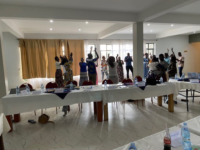 Trainees having energizing moment of song and dance