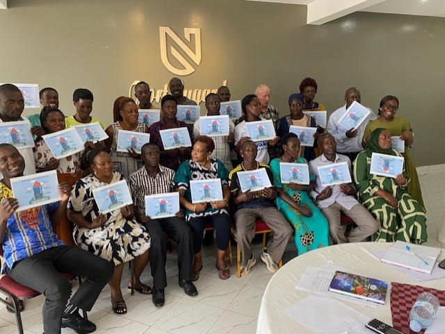 The whole group holding their copies of the ‘ICDP House’